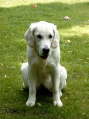 11. Juli 2002: Ronja ist nun 9 Monate alt und wiegt 29,4 kg. Wie schnell doch die Zeit vergeht. Auf der Website unseres Züchters erfuhren wir, dass ihre Mama Cappy durch ein Missgeschick schon wieder trächtig ist, so dass Ronja noch im Juli "echte" Geschwister haben wird, denn Asgard aus dem Hause Famous Viking ist wieder der Vater.
