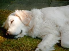 So sieht ein Golden nach einem anstrengenden Tag aus: Müde und zufrieden.