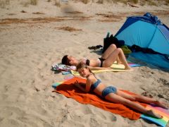 Es war so warm, dass wir uns schon in Badesachen an den Strand legen konnten. Ronja hat gleich "ihr" Meer begrüßt.