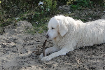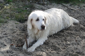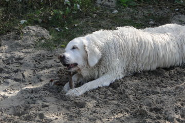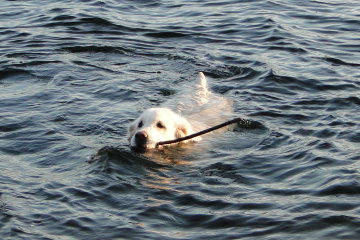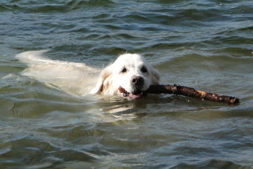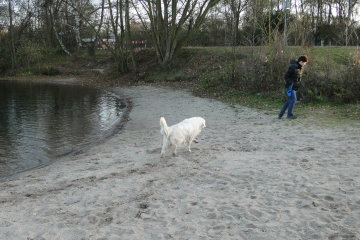 Wir gehen mit Ronja jetzt einmal in der Woche zum Kaarster See, damit sie schwimmen kann. Das ist gut für ihren Bewegungsapparat.
